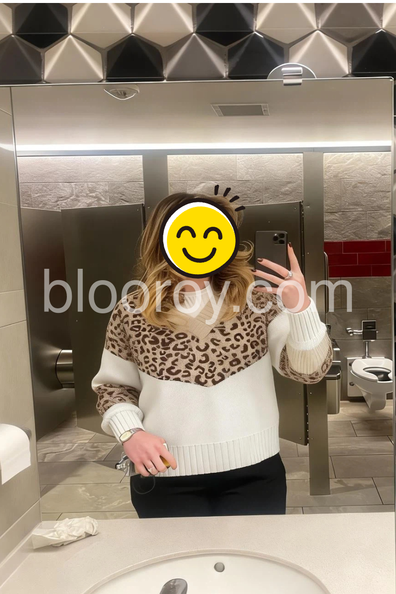 You can never have too many cozy sweaters. And when it’s this cute? You have to have it! Our newest pullover is colorblocked with a pop of leopard knit and styled with a crossover V-neckline and wide ribbed cuffs. It looks great with slim joggers and platform sneakers.