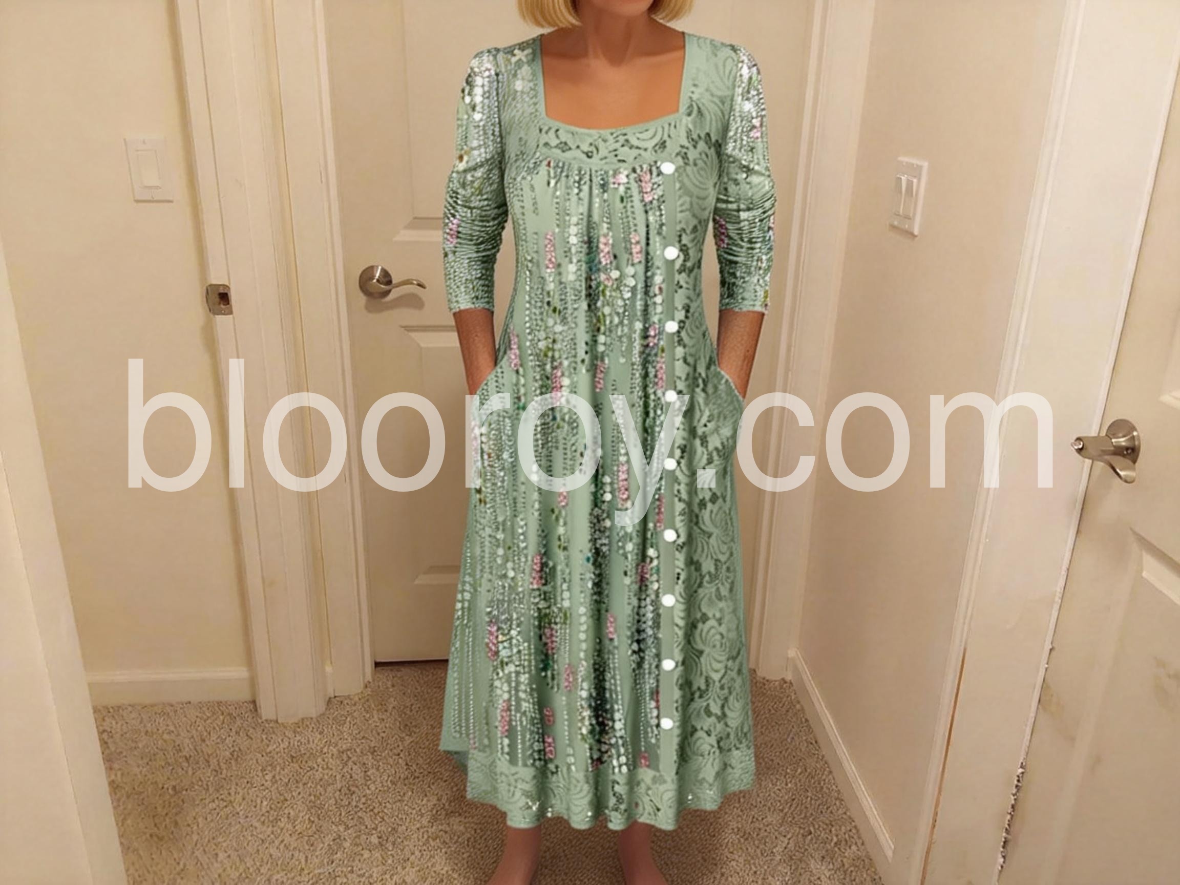 The floral lace pattern is just stunning in person. The buttons add a lovely touch of elegance. It falls beautifully past the knees and is very comfortable for all-day wear.