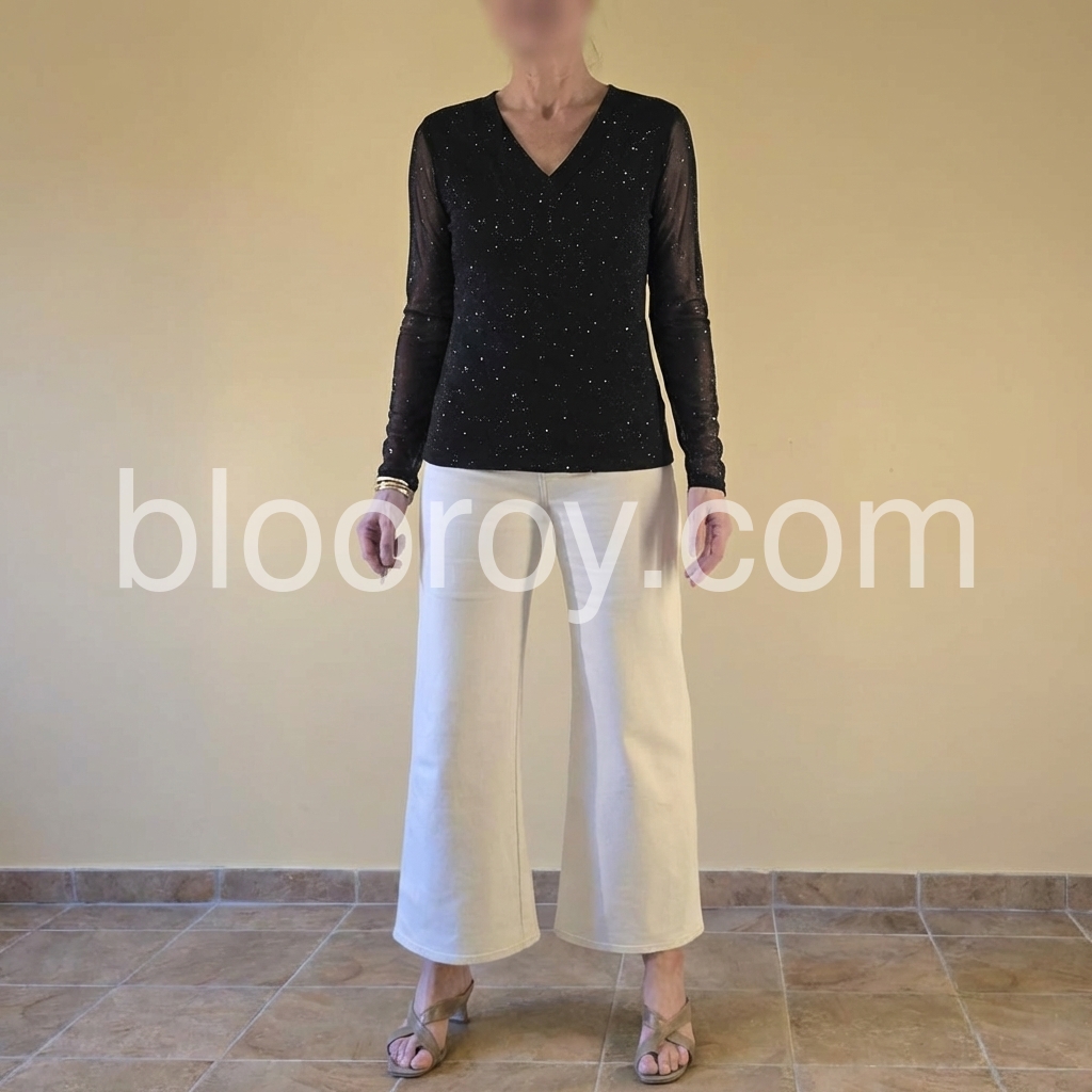 Elevate your wardrobe with this Black Sparkle Sequin V-Neck Long Sleeve Top. Designed with shimmering sequins and a flattering V-neckline, it effortlessly combines sophistication and glamour. The long sleeves provide a balanced silhouette, perfect for evening events or festive occasions. This top delivers both eye-catching style and comfortable wear, making it a versatile choice for any chic ensemble.