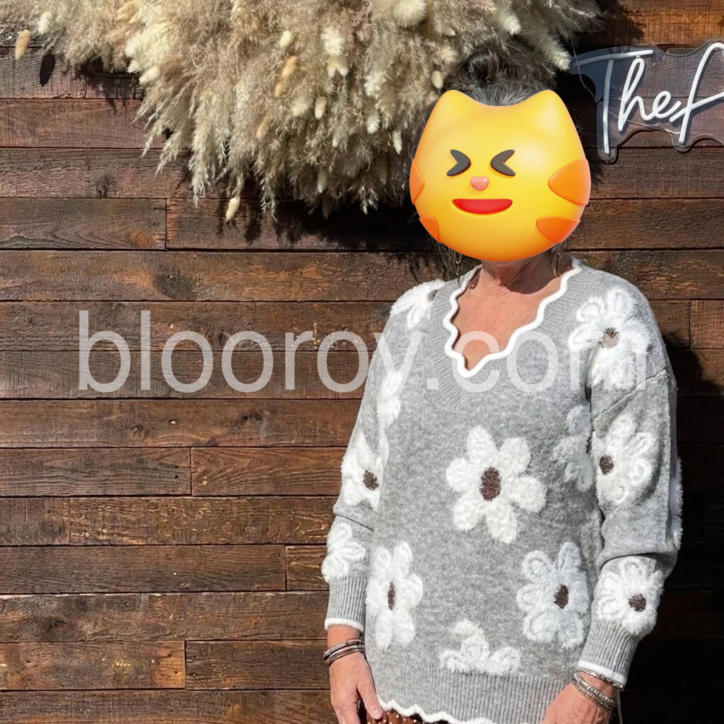 This Grey V-Neck Floral Print Sweater will keep you fashionably warm all season. With its classic v-neck design and floral print, this sweater has the perfect combination of style and comfort. Perfect for any occasion, this sweater is sure to keep you looking stylish.