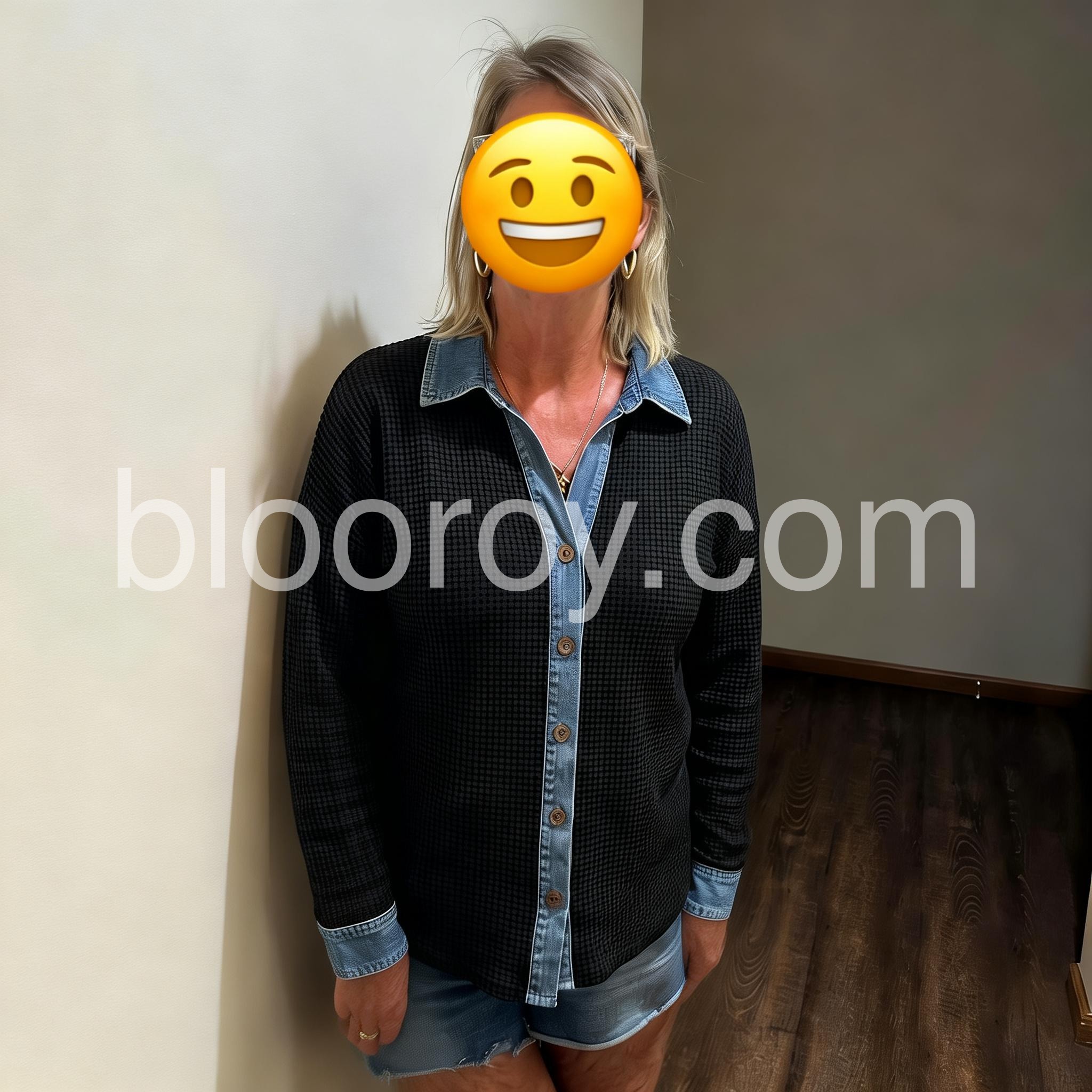 Chic Contrast Denim Collar & Cuff Shirt