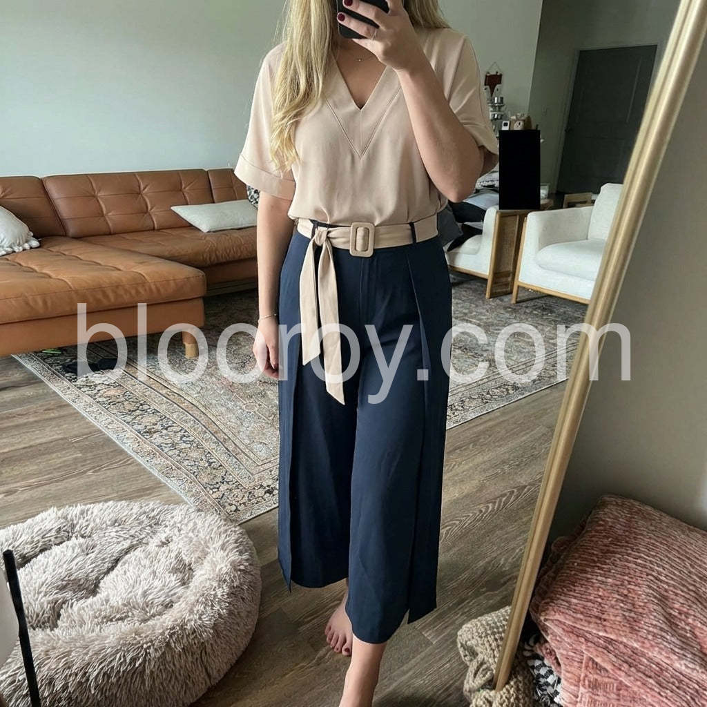 Elevate your wardrobe with this sophisticated V-Neck Short Sleeve Two Piece Set. Designed for versatility, it combines tailored precision with contemporary styling. The flattering V-neckline enhances your silhouette while the coordinated pieces allow for effortless mixing and matching. Perfect for transitioning from professional settings to evening occasions with refined ease.