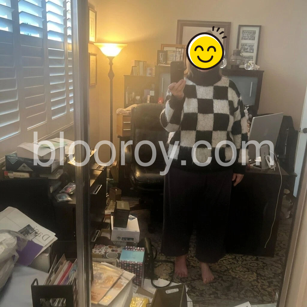 This oversized black and white checkered sweater is crafted from a soft mohair-blend knit, offering exceptional warmth and comfort. Its relaxed fit enhances layering options while the classic checkered pattern adds a timeless, sophisticated edge to any outfit. Ideal for cooler seasons, this sweater combines style with cozy functionality for a refined yet casual look.